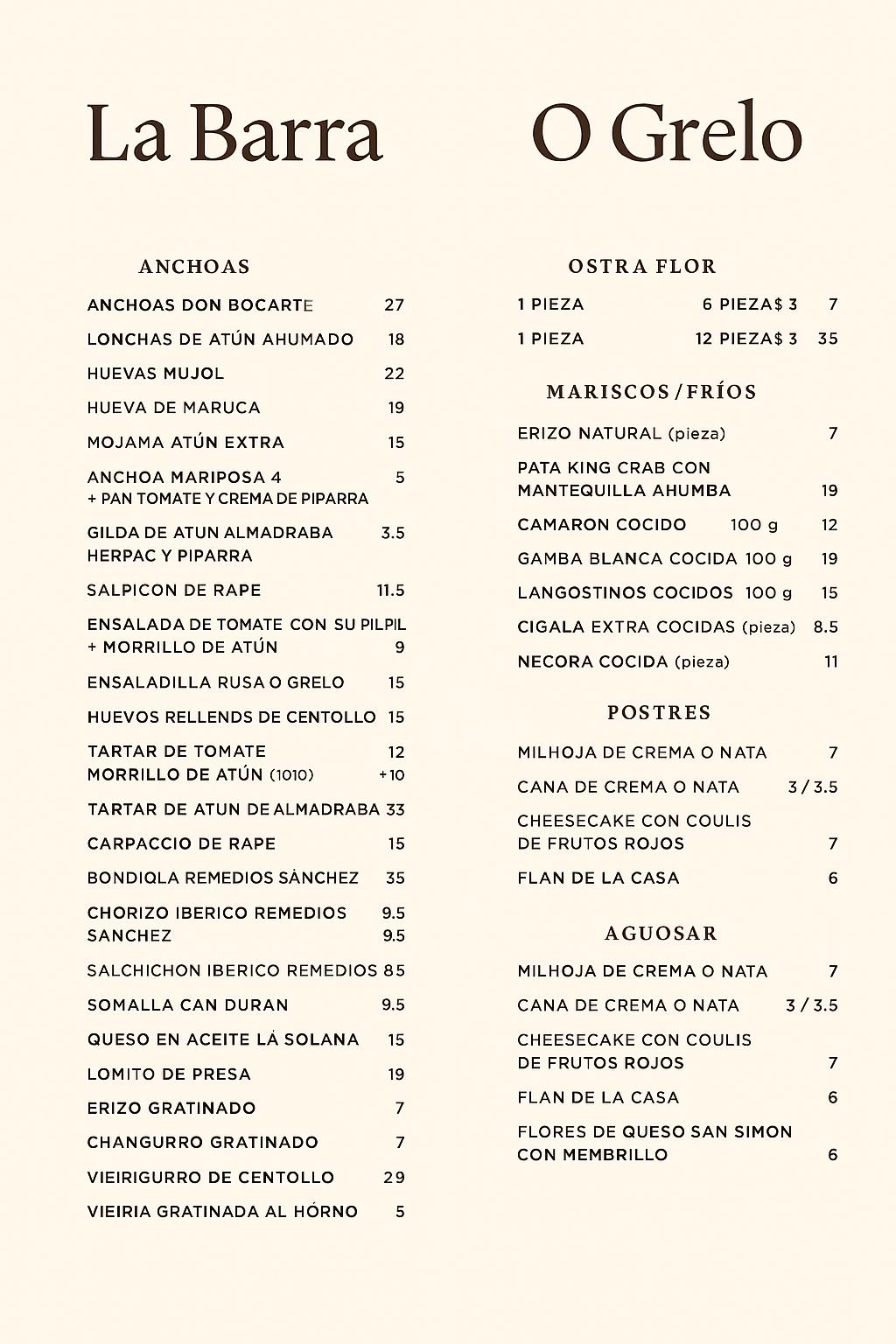 Barra de O’Grelo nace como una taberna gallega de las de siempre: barra viva, producto honesto, buen tapeo y ambiente auténtico. Un lugar para entrar sin pensar, pedir algo bueno, comer mejor y quedarse a gusto.